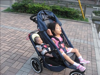 ![]() 座席を前につけ、小さい子と新生児の2人乗り 2008/09/20 |